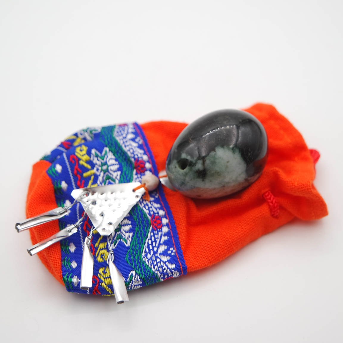 Kartu gausite medvilninį maišelį yoni kiaušiniui laikyti ir naudojimo instrukciją raštu.